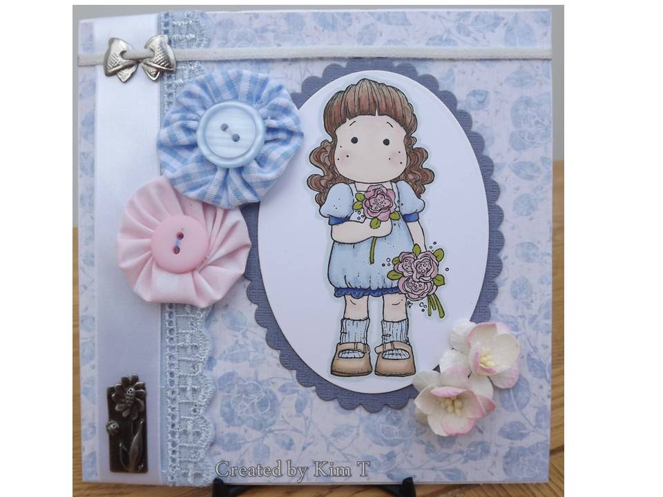 and this is what I came up with! The lovely stamp is a Little Claire design, and they do a lovely range of cute stamps. I coloured it with promarkers and prisma pencils
